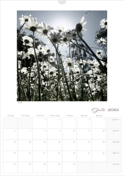 Der Kalender 'la vie en fleur' 2026 beschreibbar zeigt Bilder aus 10 Jahren Fotografie-Leidenschaft und die Begeisterung über die Möglichkeiten, Bilder zu bearbeiten, wie ich sie möchte und wie ich die Welt sehe oder gerne sehen würde.